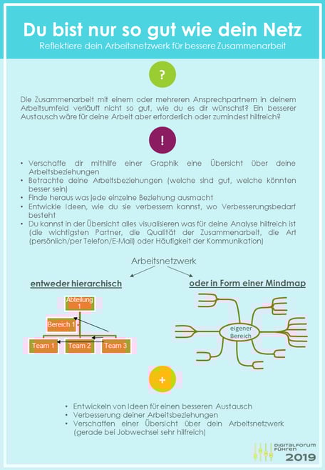 Neben der Verbesserung deiner Arbeitsbeziehungen verschaffst du dir mit diesem agilen Tool gleichzeitig eine Übersicht über dein Arbeitsnetzwerk und Ideen, wie du es weiter ausbauen kannst.